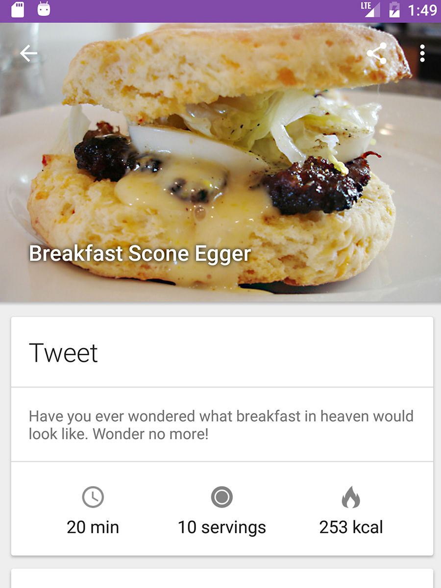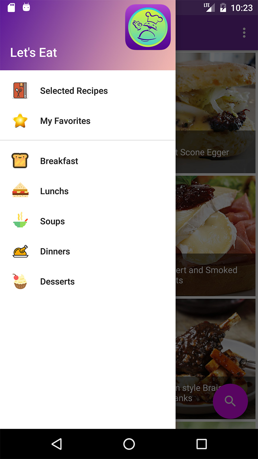 Let's Eat is a wonderful app with great recipes. You can make awesome meals! Let's Eat is a wonderful app with great recipes. You will be able to go through the ingredients and directions and make awesome meals! This app will help you shop for your ingredients. It has a click select to help you confirm that you have each needed ingredient for your amazing meal. It comes with 5 breakfast, 5 lunch, 5 dinners, and 5 dessert recipes. I hope you enjoy it!01.