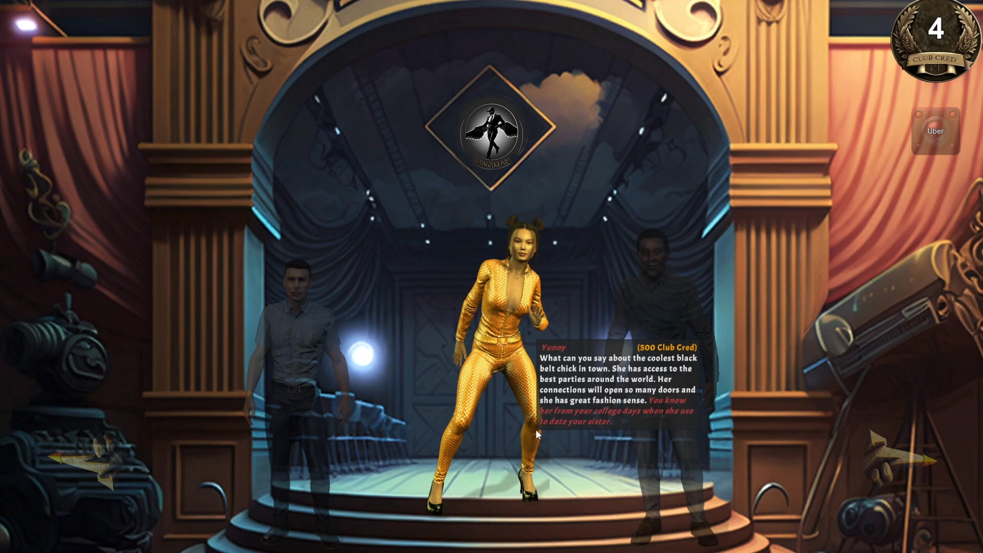 Wingman is a laid-back adventure game. You will choose from three wingmen. Maximo, Yunny and Tbone. Your first course of action is to unlock them. Each Wingman comes packed with their own skills, which will aid you accordingly. Travel to different clubs in different cities with them. As you venture your way to the top. Each club or party will require you to choose the right wingman. Times can get harry & scary out there. So making the right choice is essential. So go and earn some 'Club Cred' to unlock these guys. Remember, your also a wingman for them as well.03.